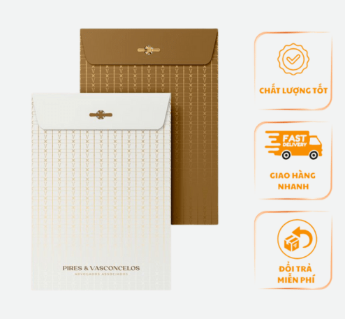 | Độ Bền Cao | Sử dụng giấy dày (Fort/Offset 120−150gsm) bảo vệ tài liệu an toàn khi vận chuyển. | Gửi thư chuyển phát nhanh hoặc lưu trữ nội bộ. |
