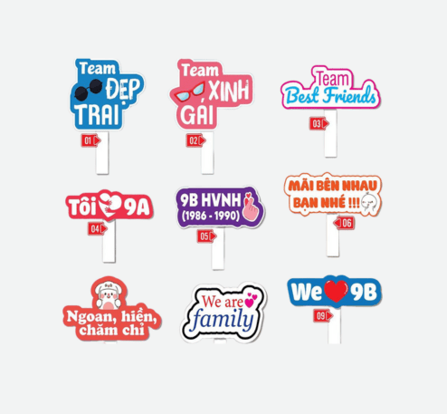| Dưới 10 cái | ∼30×40cm (Size M) | In Decal PP, Bồi Fomex 5mm, Cắt Bế, Gắn tay cầm. | 50.000 – 70.000 |