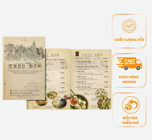 Kích thước– Chuẩn: A4 (210 x 297 mm) hoặc A5 (148 x 210 mm) – Tùy chỉnh: Theo yêu cầu thiết kế