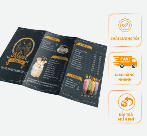 Với quy trình in ấn được tối ưu hóa, In THANH HOA đảm bảo cung cấp sản phẩm Menu Gấp 3 chất lượng cao và đúng thời hạn: