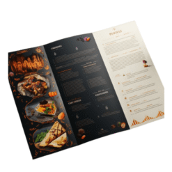 Việc lựa chọn chất liệu giấy và kỹ thuật gia công sẽ ảnh hưởng lớn đến cảm nhận của khách hàng khi cầm Menu Gấp 3: