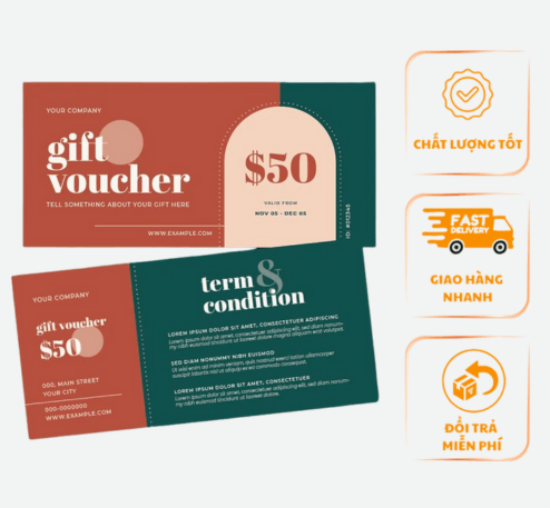 Đừng bỏ lỡ cơ hội gia tăng doanh thu và xây dựng lòng trung thành khách hàng chỉ với một tấm Phiếu Quà Tặng được in ấn chuyên nghiệp.