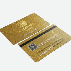 | Nhũ Vàng/Bạc Toàn Thẻ | Tấm nhựa PVC được tích hợp nhũ vàng hoặc bạc lấp lánh trên toàn bộ bề mặt thẻ. | Phù hợp với Thẻ Black Card, Thẻ VIP Membership (sang trọng tối đa). |