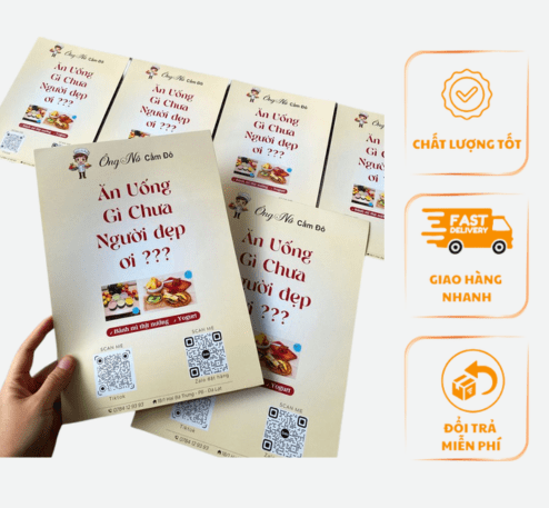 | Cán Màng (Tùy Chọn) | Cán màng bóng hoặc mờ cho tờ rơi định lượng dày (từ C200gsm) để tăng độ bền. | Chỉ áp dụng cho tờ rơi cao cấp (Menu, Flyer giới thiệu sản phẩm). |